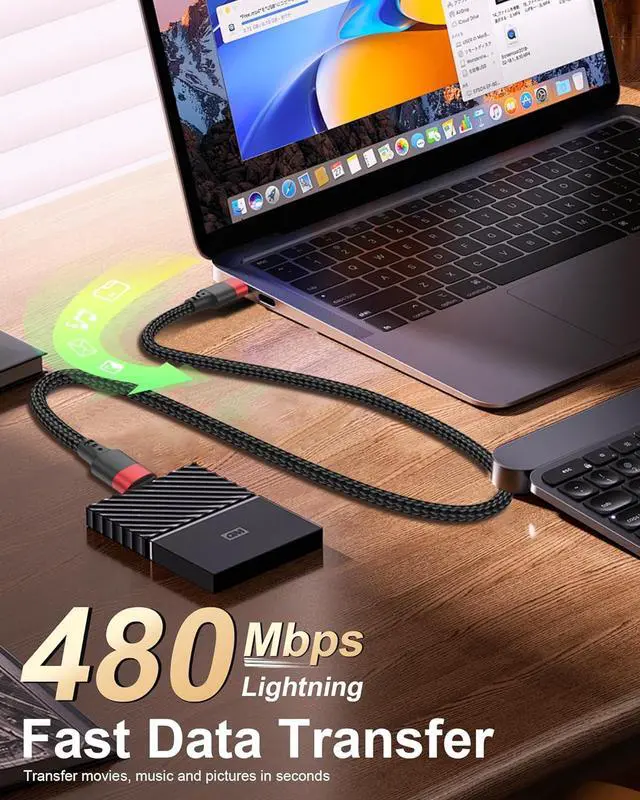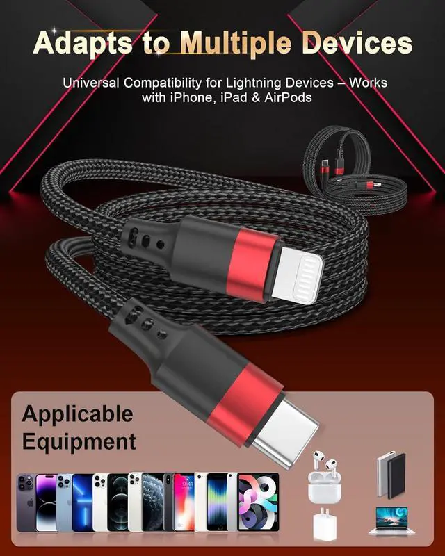 Fast Charge & SyncThis 2 feet USB C to Lightning cord enables 3A fast charging (with 20W+ PD USB C charger) and 480Mbps data transfer - all in one durable cable. MFi CertifiedEquipped with an authentic -certified chip the Type C to Lightning cable ensures seamless connectivity with most Lightning devices such as iPhone 14/13/12/11/SE. 2 ft LengthShorter than 3ft cables for a clean efficient workspace this USB-C to iPhone charging cord covers 90% of daily use cases with its practical reach while keeping your setup tidy. Long LastingFeaturing heavy-duty nylon weaving and tested to survive 50 000+ bends our Lightning Type-C cable can bear over 40kg of weight - far tougher than plastic cables.