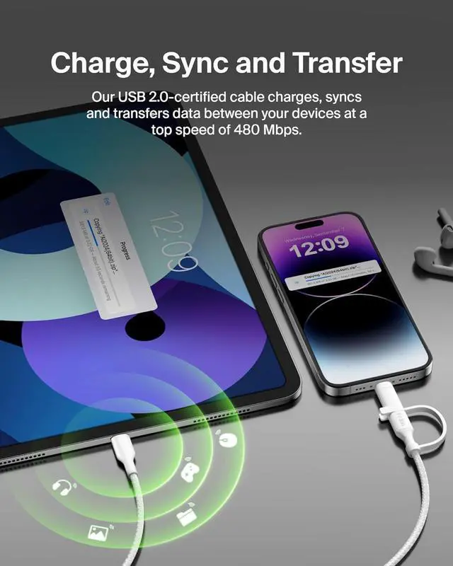 DUAL CERTIFICATION: Experience fast data transfers at 480mbps with USB 2.0. Plus this cable meets the criteria for both USB-IF certification and Made for iPhone certification.