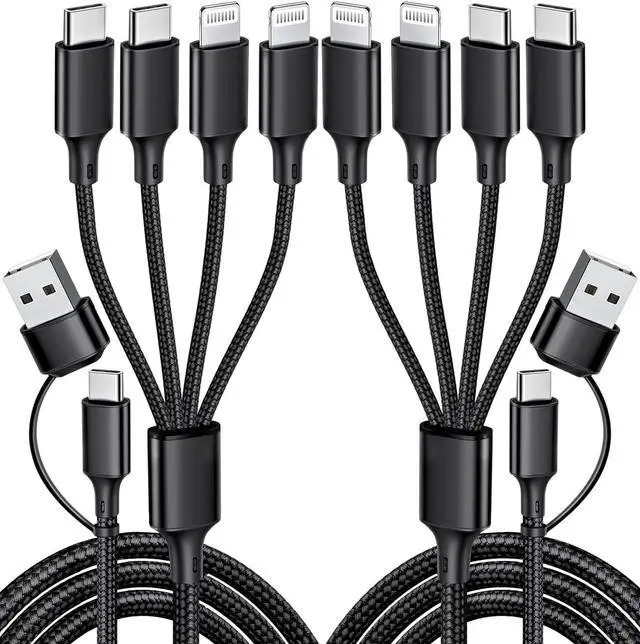 Charging Cables: This 4 in 1 multi charging cable for multiple devices can charge four devices at once with dual USB-C ports and dual Lightning ports. One universal multi charging cable can charge all new-model phone devices. It's compatible with all iPhones androids pads and tablets. Portable for travel road trip camping and neatly for home use office uber lyft business or sharing with friends.?
