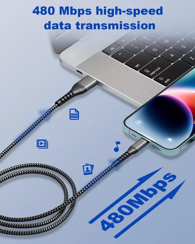 Fast Charging & Sync Capability: These iPhone charger cord support fast charging allowing you to quickly and efficiently power up your iPhone. This iPhone charging cable charges faster than the original iPhone charging cable and it supports fast charging with a maximum 60W charger Say goodbye to long charging times. Meanwhile the iPhone Wire transmission speed can reach 480Mbps the usb cable no warning message will pop up and that your iPhone or other Mac devices are charged safelyPremium
