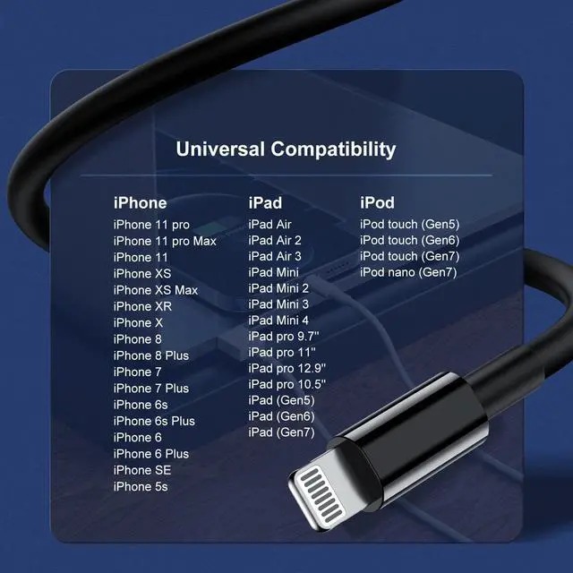 Long Charging Cord Compatibilty: the iphone charger cord is MFi certified. This iphone charger cable 10ft is fully compatible with 12/12 Mini/12 Pro Max /11 / XS / XS Max / XR / X / 8 / 8 Plus / 7 / 7 Plus / 6s / 6s Plus /6 Plus / 6 / SE iPad Air iPad mini iPad iPad Pro iPod nano iPod touch as well as the latest iOS system.