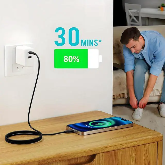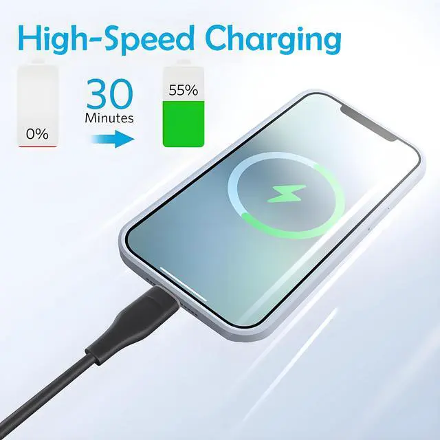 FAST CHARGING: When used with an 18W or higher USB-C Wall Charger with Power Delivery you can charge your iPhone to 50% battery in just 30 minutes - supported models include iPhone 12 and older generations