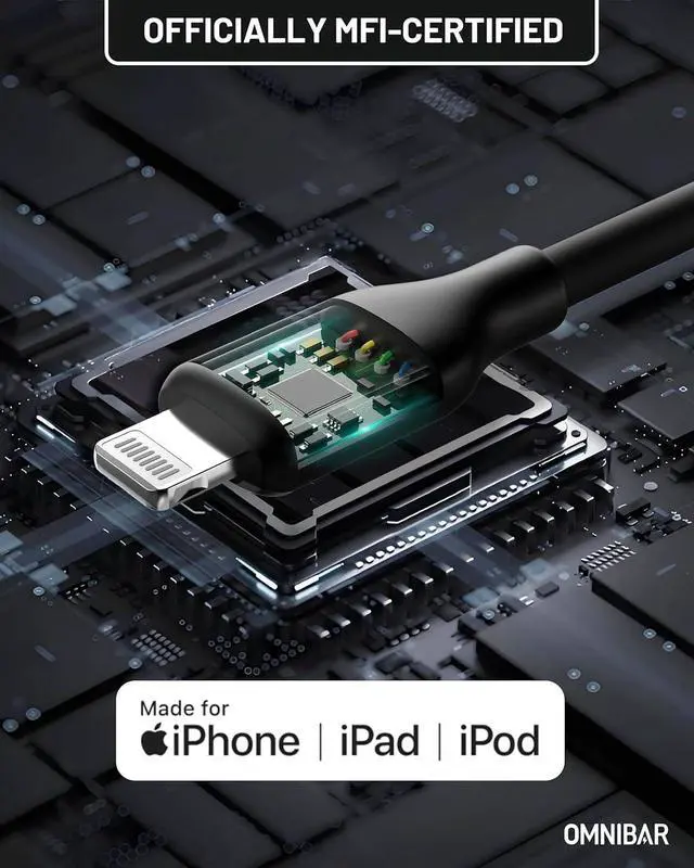 APPLE MFI CERTIFIED: Officially authorized by Apple to ensure 100% compatibility with iPhone, iPad, and iPod. Each Lightning cable features a genuine Apple C94 smart chip, and its certification can be verified directly on Apples official website for guaranteed safety, reliability, and seamless charging.