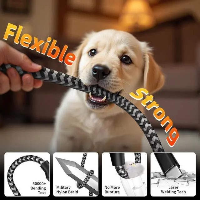 MILITARY-GRADE DURABILITY: This usb c to multiple connectors cable has been upgraded three times for durability and reinforced with military-grade nylon braiding, increases tension by 220%, tested to withstand 30, 000+ bends3X more durable than standard charging cable. Thickened tinned copper ensures stable current and extends battery life, prevent overheating and short circuits.