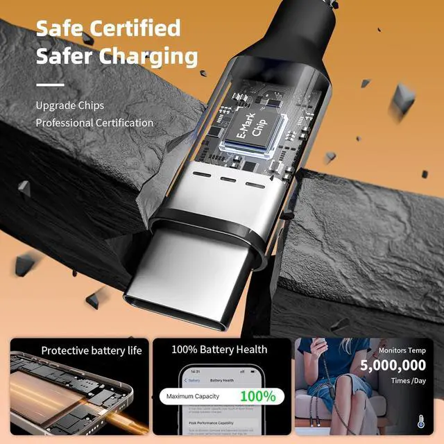 Specification Note: Final power distribution is subject to device-specific power negotiation and may vary based on connected load. Concurrent usage across multiple ports might impact individual charging performance. Designed for low-to-moderate power devices and standard charging applications. This USB C CABLE is not a fast-charging cable.