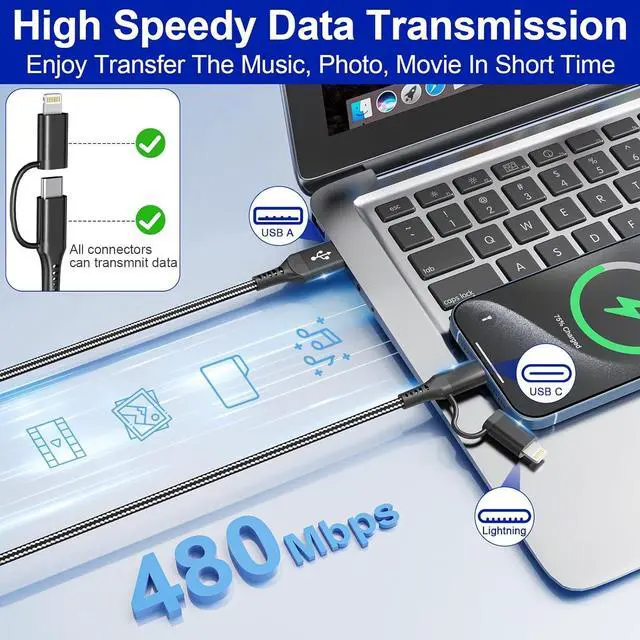 Universal Compatibility: USB to USB C and Lightning cable works seamlessly with a wide range of devices. Lightning port works seamlessly with iPhones including iPhone 14/14 Plus/14 Pro/14 Pro Max/13/13 Pro/13 Pro Max /13 mini/12/11/X/XS/XR/8, iPads, ect. Compatible with USB C supported devices including iPhone 16/16 Plus/16 Pro/16 Pro Max/15/15 Plus/15 Pro/15 Pro Max/Samsung Galaxy serie/Google Pixel/HP/LG/Motorola/Xiaomi and other USB C port phone.