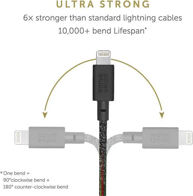 EXTENDED LIFESPAN: O-Flex strain relief design at connector joint provides controlled flexibility to absorb 2 x more stress than regular strain relief. Its 10, 000+ bend* lifespan makes it 6 x stronger than standard Lightning cables