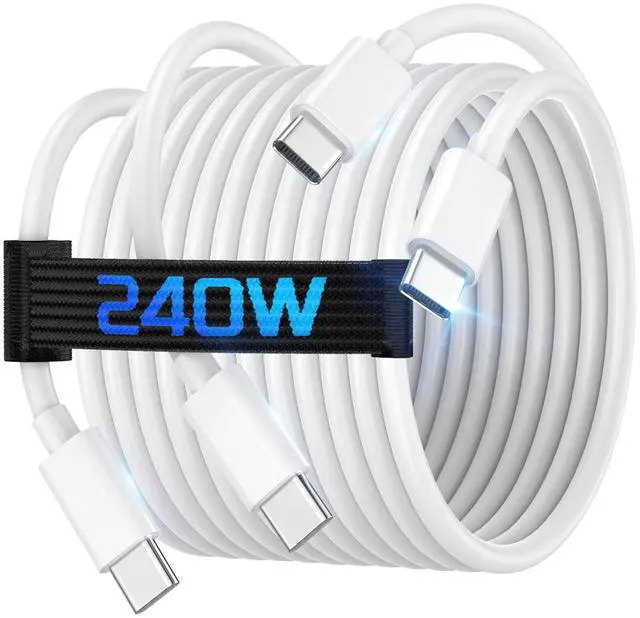240W USB C Cable Fast Charging 10FT 10FT long usb c charger cable cord for iPhone 17 Pro Max fast charging, PD 240W type c charger cable has the same usb c plug on both ends. Rapidly charge your iPhone 16 pro max to 80% in just 30 minutes using a 30W charger, while the official E-marker chip guarantees a reliable and efficient charging experience.