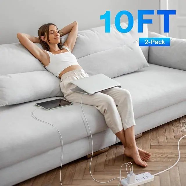 Perfect 10FT USB C Cable Length With a length of 10 foot, this 2 pack USB C to C cable 10ft allows convenient charging from a long distance, no need to sit near the socket any more, 10 feet long design bring more convenience for your life and work. Thanks to exceptional flexibility, remains tangle-free even when stuffed into a bag or pocket.