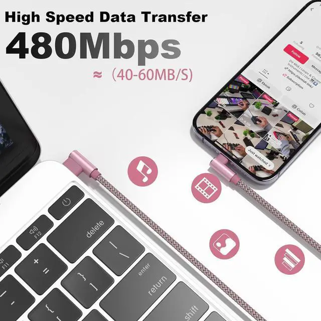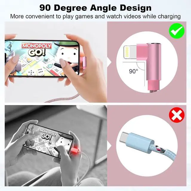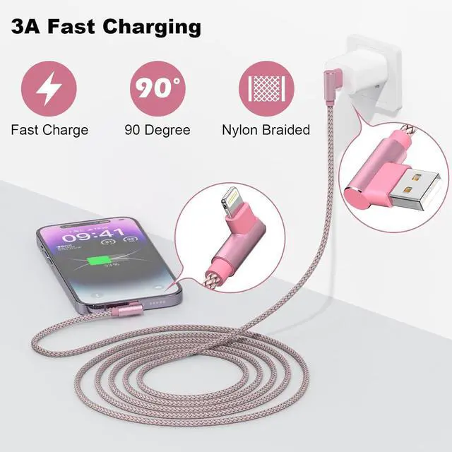 90 Degree Elbow DesignLong iPhone charger fast charging comes with unique ergonomic 90 degree right angle design, best ideal for using at home, in car and off. Ideal for game players to playing games or using as car accessories. While Playing Game, Don' t Worry About Power Loss