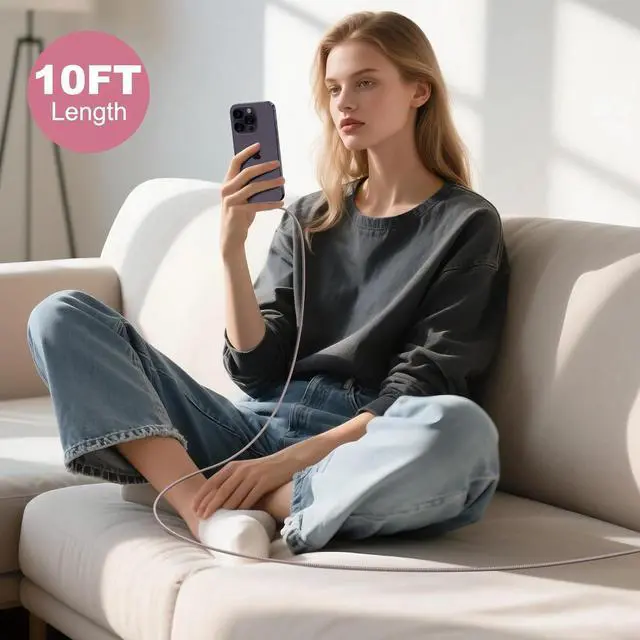 What You Get: 2 Pack iPhone lightning cables in lengths 10FT, To be convenient to charge your device in bedroom, sofa, office, travel, even when you are on the backseat of the car. If you have any questions, please first times contact us. Our service team will provide you with a satisfactory solution within 24 hours