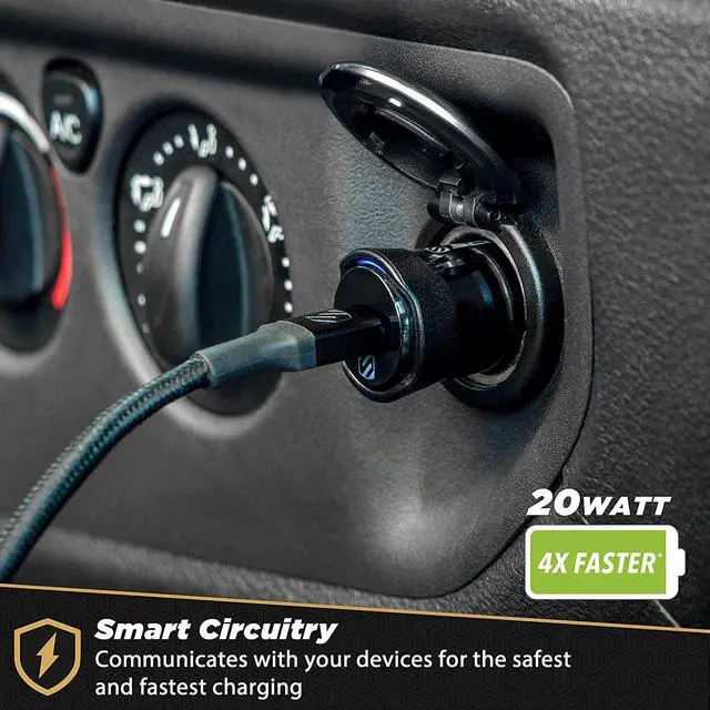 20-WATTS OF POWER FOR FAST CHARGING: The Type-C port on the car charger provides up to 20-Watts of power to fast charge Apple Lightning devices which support Power Delivery fast charging. The car charger is also backwards compatible with standard USB-C devices.