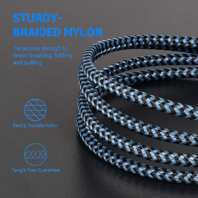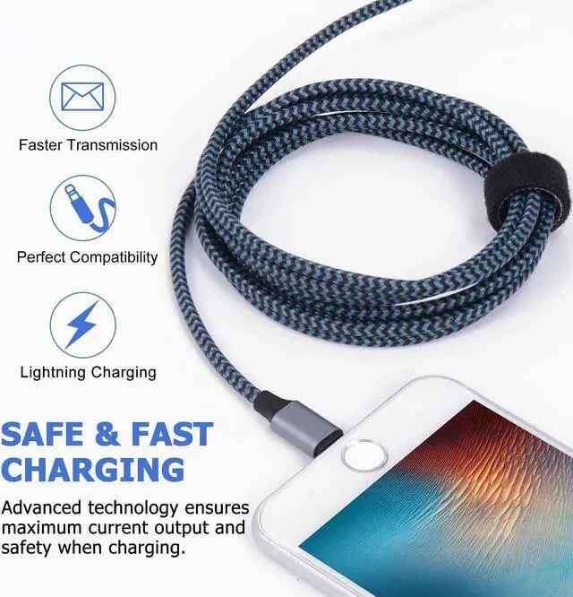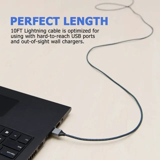 Extra Long & Durable: iPhone charger features nylon fabric and reinforced connectors, and outperforms plastic-made cables in bearing tangle, split and wear. 10 Ft in length gives you more freedom while charging.