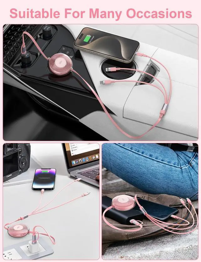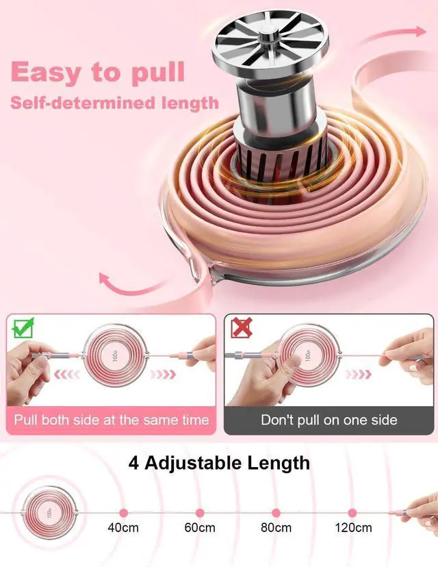 Portable: Retractable USB C cable offers 5 adaptable lengths: 1.2 ft, 2 ft, 2.7 ft, 3.4 ft, and 4 ft for diverse daily scenarios; compact design ensures easy storage in handbag or laptop bag; avoid one-sided stretching