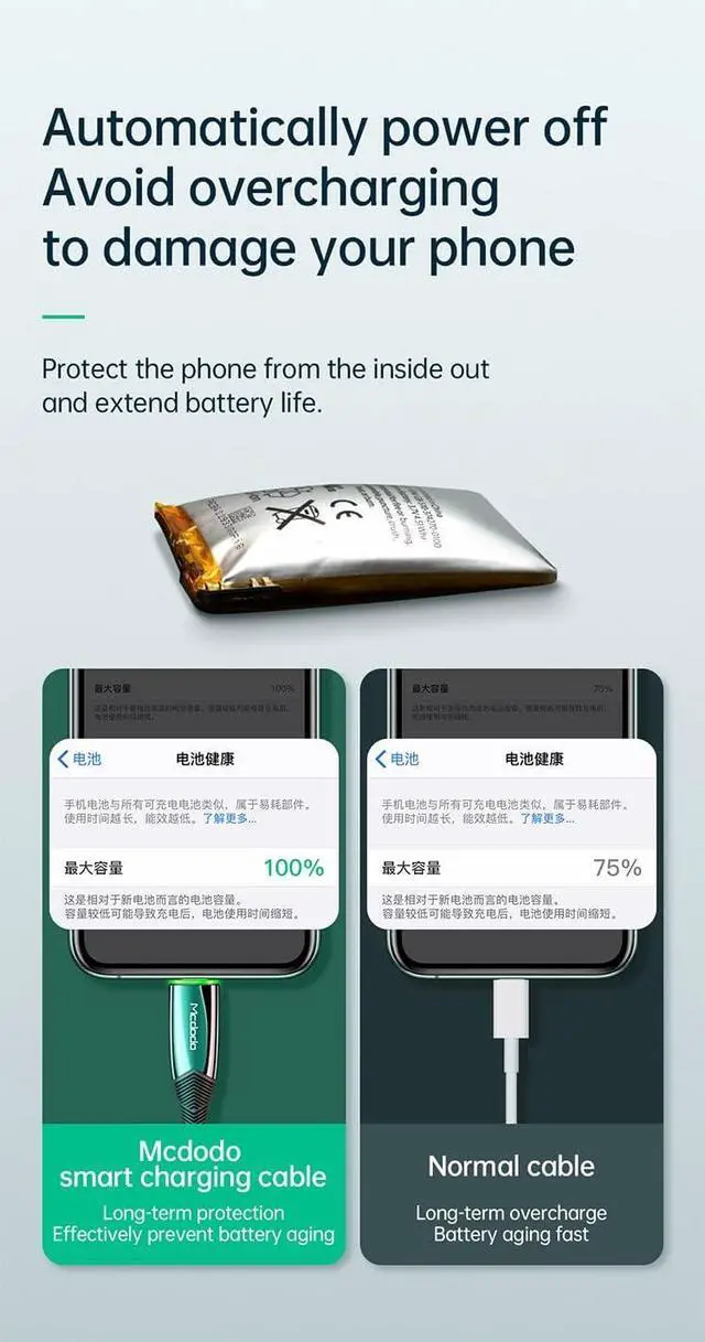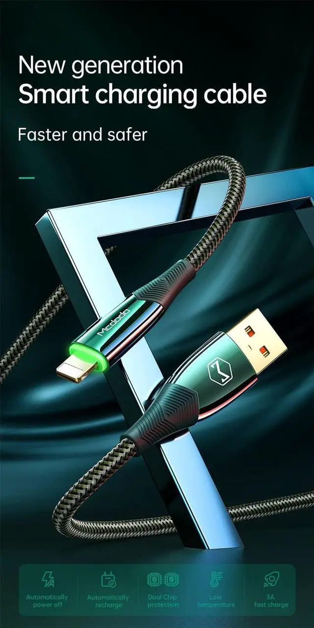 6FT/ 1.8M long is ideal for the long distance usage at home, in your office, car, on your travel and more places. People Like Charging iPhone at Sleeping, Long time charge will damage the battery life, Mcdodo will help you fill the iPhone the power automatically disconnect, Extend battery life, LED breathing light as a charging prompt