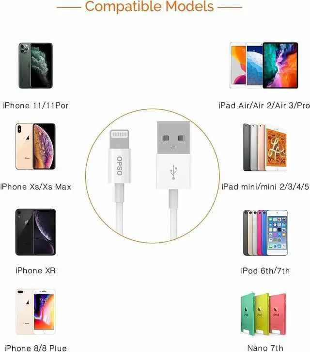 MFi Certified & CarPlay Compatible-Lightning Cable 2ft has a built-in MFI certified chip, be able to connect to the car' s computer to activate Apple CarPlay effortlessly. Apple MFi certified USB iPhone charger cable 3ft supports all iOS versions, no warning message pops up.