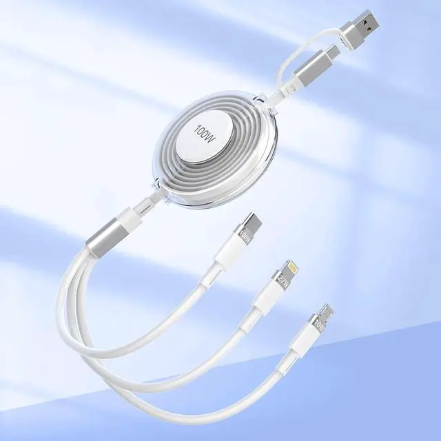 6-in-1 Retractable Charging CableMTAKYI 100W Multi Charging Cable can satisfy multiple charging demands for you. Supports fast charging 3 devices at the same time: USB C to USB C (100W), USB C to iP Port (27W), USB C to Micro USB (10W)