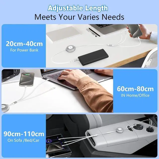 5 Adjustable LengthThe Retractable USB C Cable offers 5 adjustable