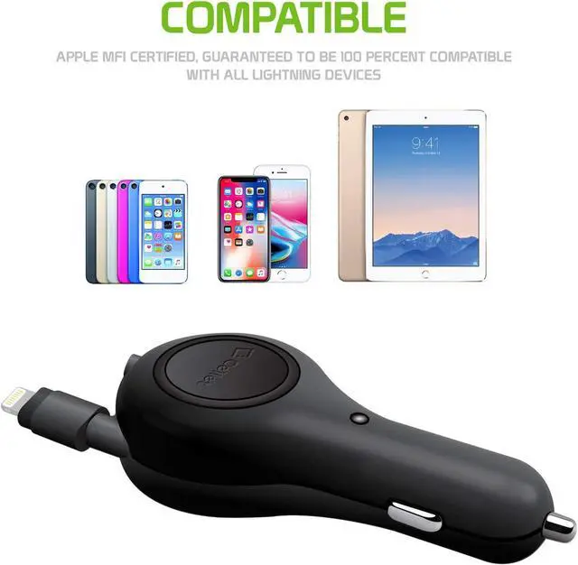 Built to charge compatible iPod, iPhone and iPad. Apple Certified