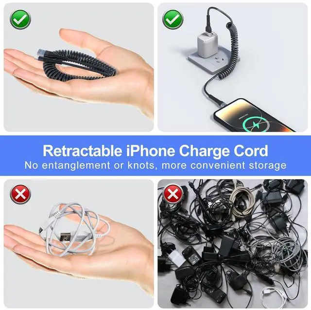 Support Apple CarPlayThis coiled iPhone charging cable is perfect for use with Apple CarPlay to charge your phone in the car. Provides a secure and stable connection to your car' s entertainment system, so you can enjoy your favorite music, podcasts, and more on the road