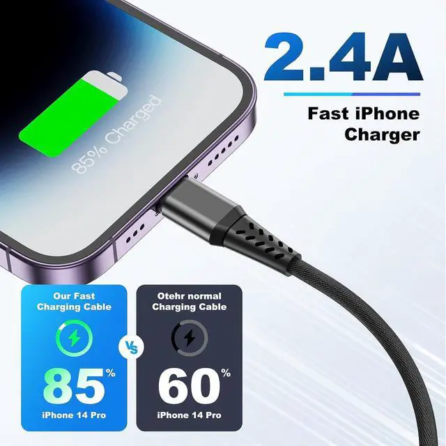 Wide Compatibility: Our lightning cable seamlessly works with various iPhone models, including iPhone 14 Pro Max, 14 Pro, 14 Plus, 13 Pro Max, 13 Pro, 13, 13 Mini, 12 Pro Max, 12 Pro, 12, 12 Mini, 11 Pro Max, 11 Pro, 11, XS Max, XS, X, XR, 8, 7, 6, and more.