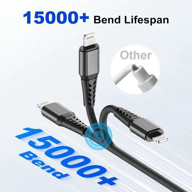 Certified Durability: Rest easy with our MFi-certified cable, ensuring 100% compatibility with your Apple devices. We prioritize durability, subjecting our cable to over 30, 000 bending tests. Crafted from TPU and high-quality nylon materials, it promises exceptional sturdiness and a long lifespan for your charging needs.