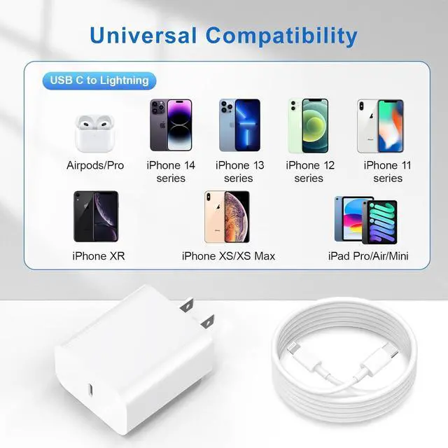 Fast Charger: PD 3.0 20W Fast Charger with 6ft USB C to ightning Cable charges your device three times faster than original 5W charger, charging your iPhone 14 to 50% in just 30 minutes.