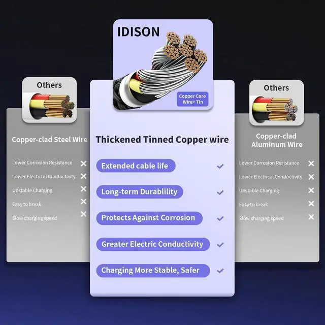 Reliable & Safer ChargingThe travel charger for multiple devices features Thickened Tinned Copper Wires, which enjoys superior conductivity for safer, more efficient charging. Rigorously tested to withstand over 20, 000 bends and plug/unplug cycles, this usb multi charging cable is built to last, even with daily use.