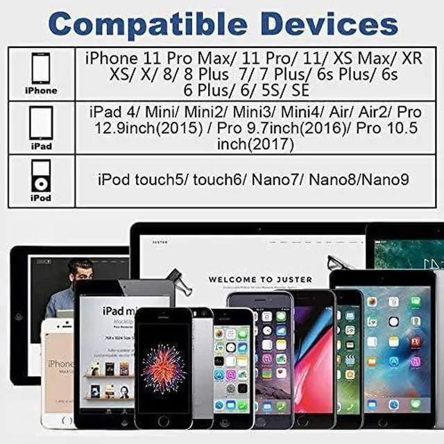 | Compatible Phone Models | iPhone 14/14 Plus/14 Pro/14 Pro Max/13/13 Mini/13 Pro/13 Pro Max/12/12Pro/12 Pro Max/12 Mini/11/11 Pro/11 Pro Max/XS Max/XS/X/XR/8 Plus/8/7/7 Plus/6s/6s Plus/6/6 Plus/SE/5s/5/5c., iPad Pro/ iPad Air/ iPad, AirPods Pro. |