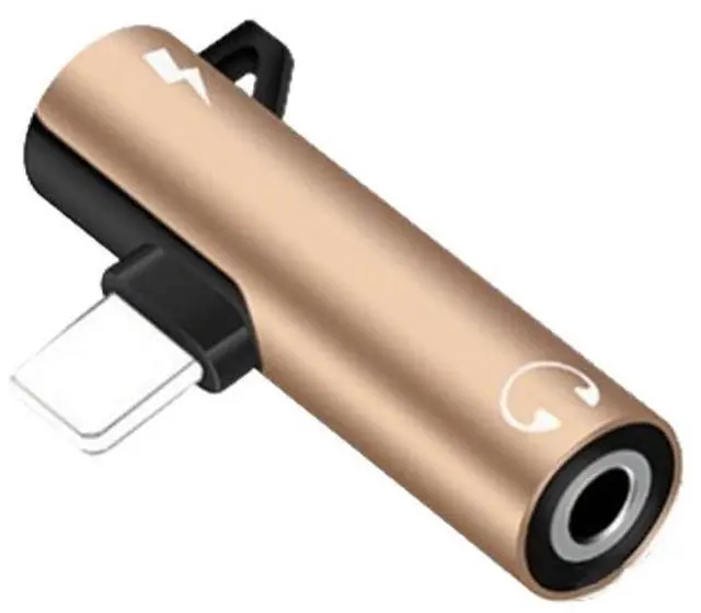 SOEWIOU 3.5mm to Lightning audio adapter in elegant gold, designed for iPhone X, 12, 13 and other Lightning iOS devices. Built-in high-performance DAC chip for lossless HIFI sound, supports microphone, wire control and stable audio transmission. Durable aluminum shell, plug-and-play, ideal for music, calls and gaming.