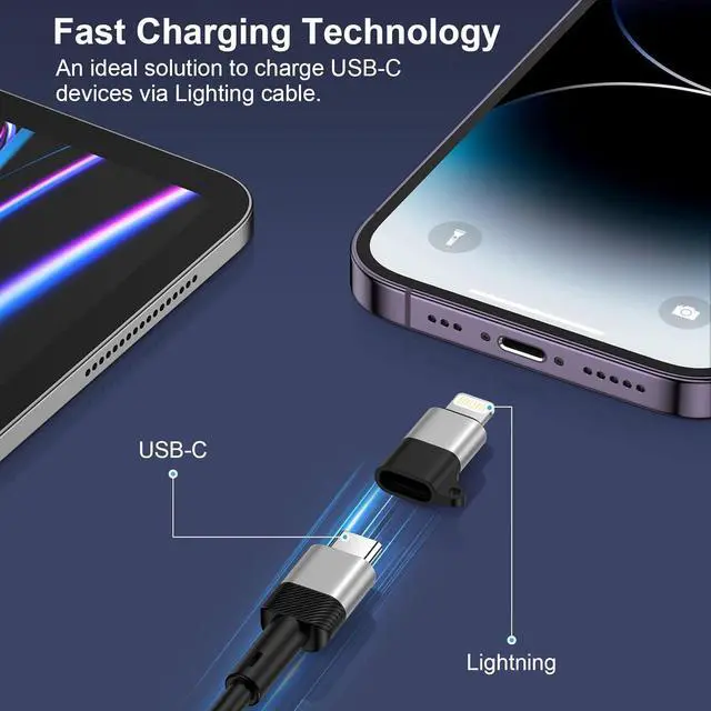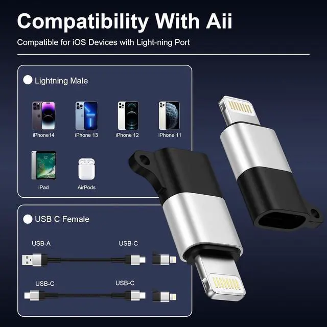Quality Lightning Port Connectors: Compatible for iphone 14 pro max 14 plus male lightning port and female usb c connectors Made from high-quality scratch-resistant aluminum alloy get excellent wear resistance and heat dissipation. Gold-plated tubing reduces heat during charging while maximizing charging efficiency. Provide you with a safe and fast charging experience. Plug and PlayPlug and play no driver required. Reversible lightning port connector allowing you to plug it in either orientation for maximum convenience. The usbc female to iphone 14 pro max 14 pro 14 plus lightning male adapter is compact and lightweight so it is easy to carry around anywhere for trip or travel.