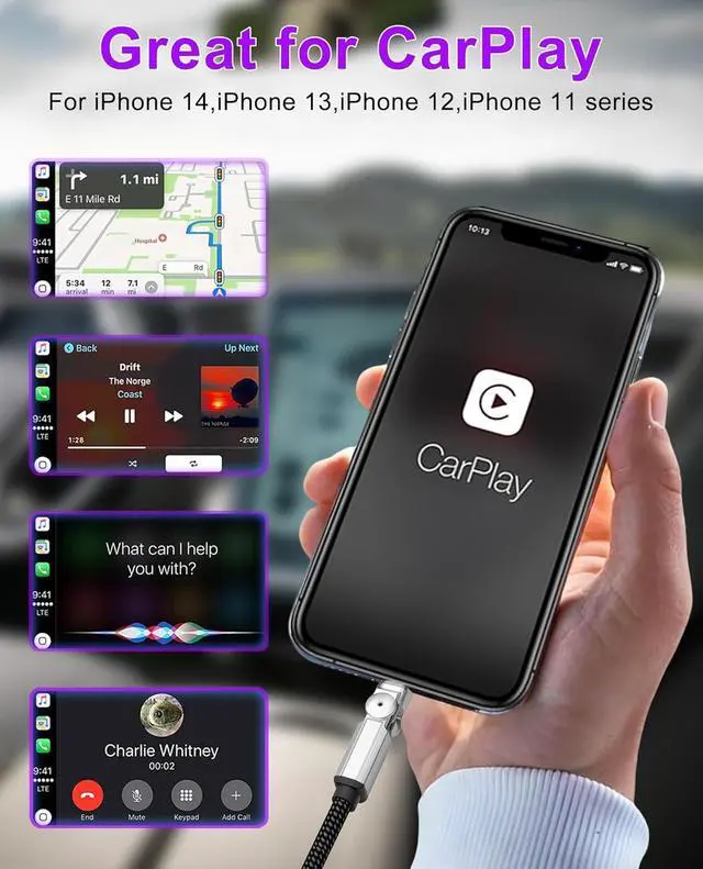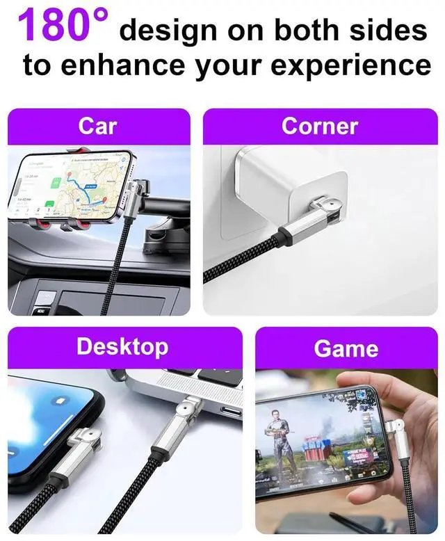 Swivel iPhone Charger: Experience the perfect charging angle with our innovative 90 Degree iPhone Charger featuring a unique 90-degree right-angle plug combined with a 180 degree cable rotating head. This rotating charger design prevents cord bending damage at the connector significantly extending cable lifespan while providing ultimate convenience for gaming watching videos and charging in tight spaces. 3A Fast Charging Data Sync & CarPlay: This advanced right angle iPhone Cable delivers 3A fast charging and 480Mbps high-speed data transfer for your iPhone. The swivel lightning cable supports CarPlay functionality creating a stable connection with your car's entertainment system to enjoy music podcasts and navigation while driving safely.