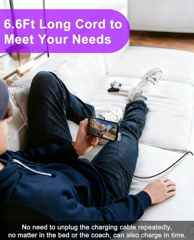 Wide Device Compatibility: This versatile right angle iPhone Charger works with virtually all iPhone and iPad models including iPhone 14/13/12/11 series iPhone X/8/SE models and various iPad generations. The rotating phone charger also supports AirPods making it your universal charging solution for all mobile devices. Durable 6.6 ft