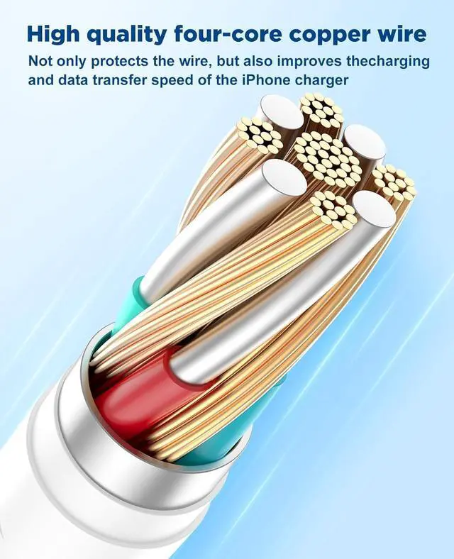 Quality Material: Extra long iphone charger cord 15ft made from high-quality four-core copper wire to protect wires increase durability and reduce wear and tear. At the same time the charging and data transmission speed of the iphone charger is improved. This long iphone charger cable has been tested to have a flex life of over 30 000 times making it last longer than standard cables and is extremely resistant to abrasion and splittingWidely