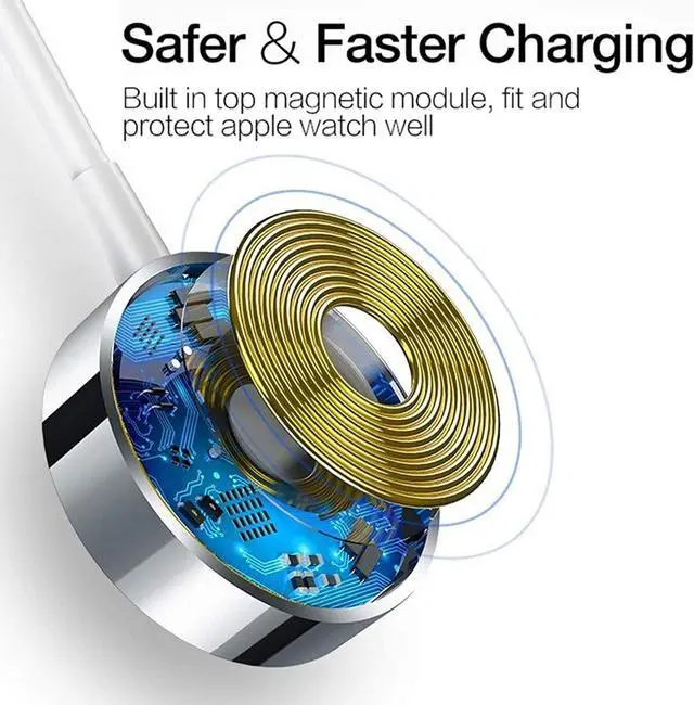 Safe Watch Charger: Our iwatch charger with the original MFi chip and integrated magnetic technology ensures 100% original charging speed for your devices. This Watch charger cable is made of high quality ABS+PC and pure copper wire the cable has been tested for 10000+ times of bending to avoid shortened lifespan due to aging and usage.
