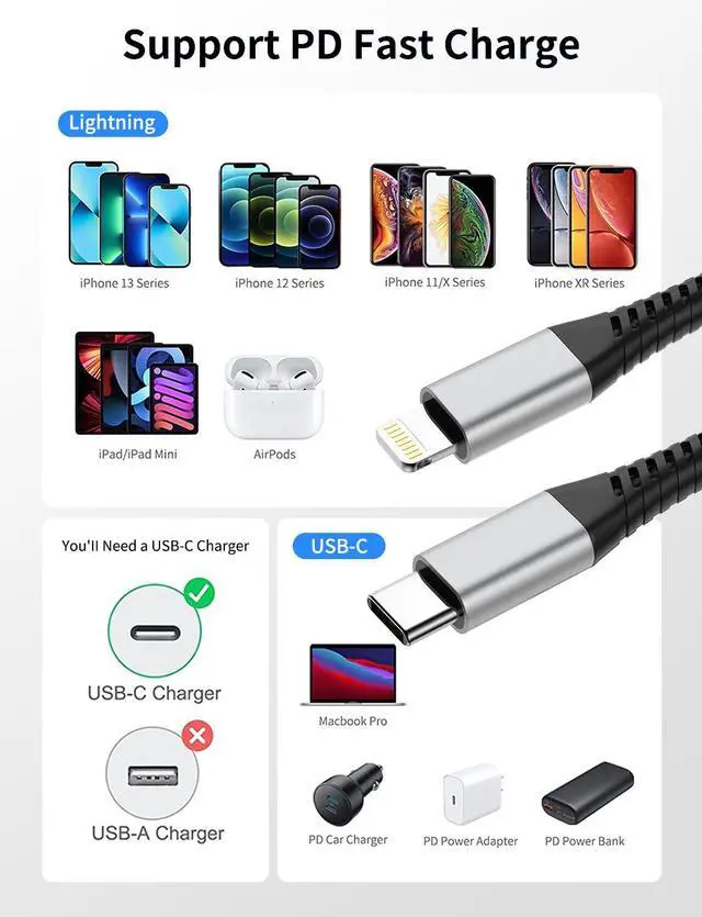 Compatibility: Compatible with Lightning devices for iPhone 14/ 14 Pro Max / 13 / 13 Pro Max / 12 / 12 Pro Max / 11 / 11 Pro Max / XS / XS Max / XR / X / 8 / 7 / 6s Plus / 6s / 6 Plus / 6 / 5s / 5c / 5 / iPad Air 2 / iPad mini 4 and moreWhat