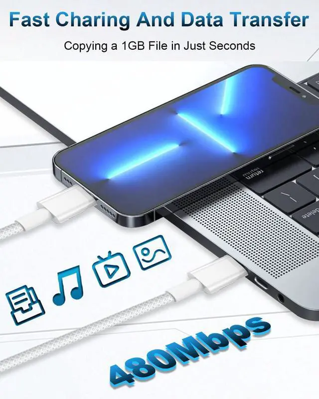 Cable: The USB C to Lightning cables support fast charging when using USB-C 20W Power Delivery Chargers which can charge an iPhone 14 up to 50% in just 30 minutes almost 3 times faster than a iphone original charger cable. Anssan iphone cord also supports data transfer speeds of up to 480Mbps for easy transfer of music photos and files between devices. With the lightning cable 2m convenient to charge your device in bedroom sofa office travelling.