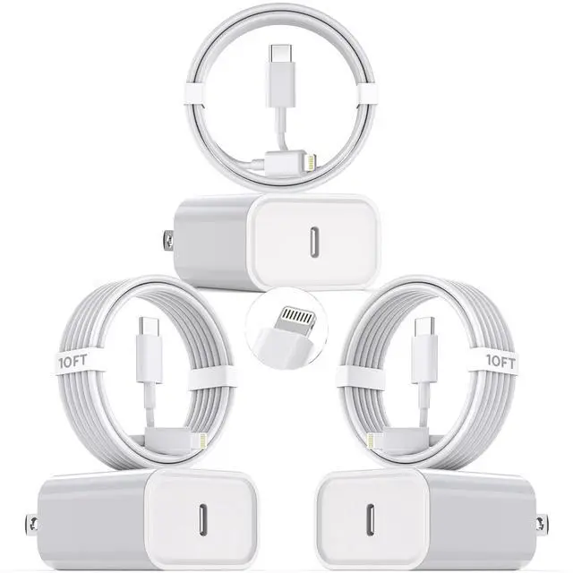 Charger Block Set: 3*iPhone Fast Charger + 3* 10 foot USB-C to Lightning cable you can also give it as a gift or share it with your family.