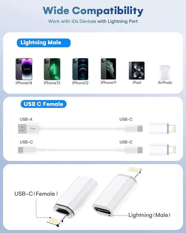 Your Setup): Streamline your tech. This USB-C to Lightning adapter instantly turns any USB-C cable into a complete Lightning charger and data cable. Power and sync your device with one cable reducing clutter and making your bag lighter and more organizedPremium Durability & Safe Construction (Built to