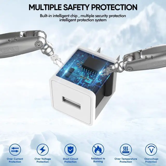 S. Safe Market. These iphone charger adapter multiple built-in safeguards and intelligent IC identification technology protect against short circuit over-current over-voltage over-heating and over-charging with charger iphone. [What's in Package]2 Pack charger block & 2 Pack iphone charger 6 feet cord.