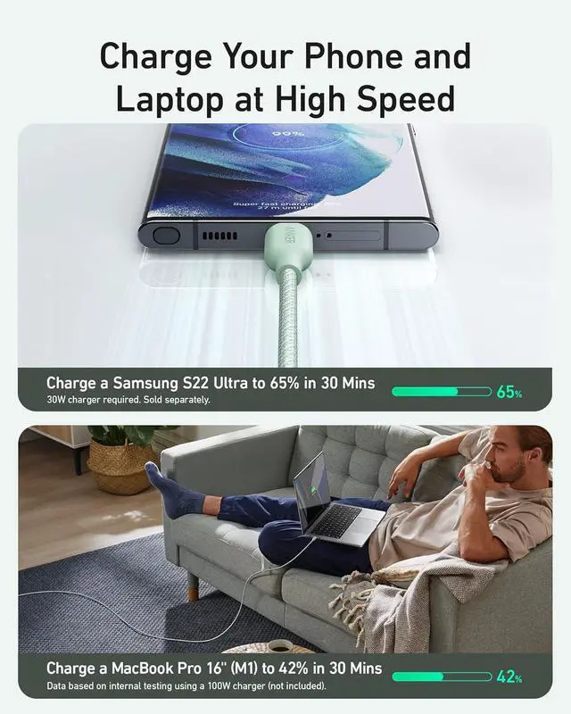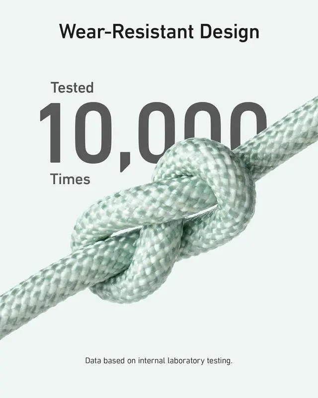 Bio-Braided Resilience: Designed to last this bio-braided USB-C cable has undergone 10 000 tests and offers an exceptional 20 000-bend lifespan.