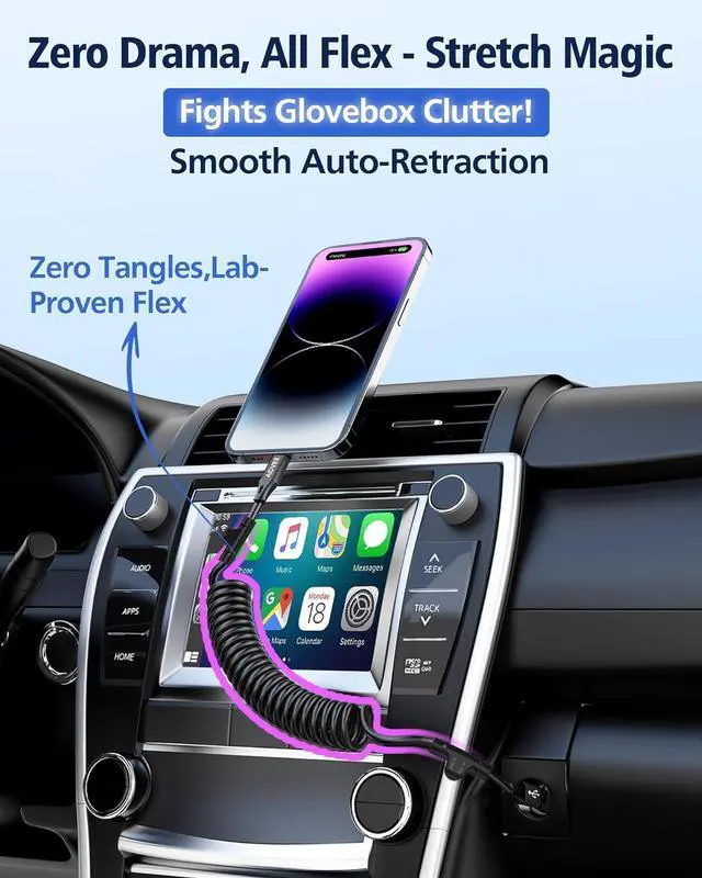 ?? [Tame Your Car's Cable Jungle] No more wrestling with spaghetti cords! Our coiled design stretches from short to long perfect for tight car spaces then snaps back neatly like a slinky. Keep your cup holders free for coffee not tangled chaos!