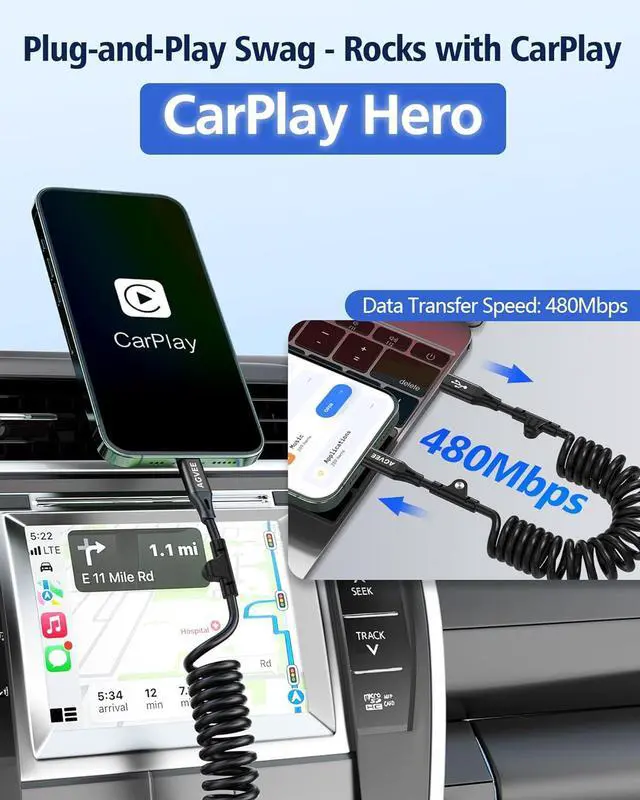Bonus: Eco-friendly materials.?? [Fits Every iOS Device with Lightning Socket] Compatible with iPhone 14 13 12 11 XS X 8 7 6S 6 5S 5 series iPad CarPlay-Optimized Design - perfect for road trips or home offices(USB-C Carplay port). Backed by a 24-month warranty and US-based support. If it ever fails we'll rush a replacement - no forms no drama. Pinky promise! Tired of CarPlay Ghost Disconnections? Snag This Anti-Tangle Hero??