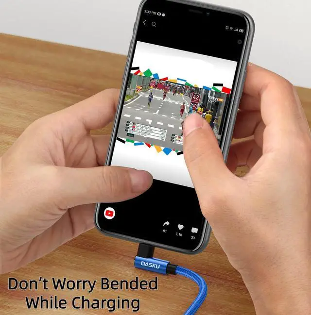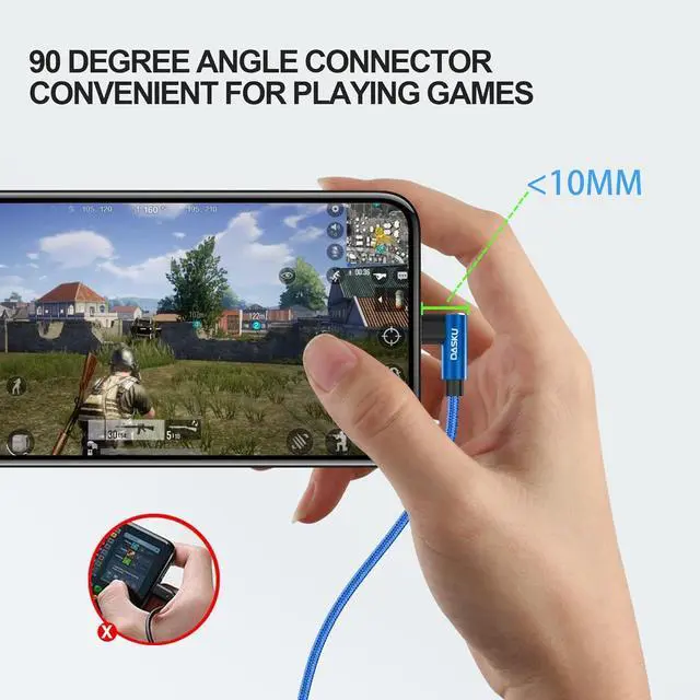 90 degree right angle designSpecial right angle design not only give you great convenience of playing games increase winning probability but also easier to watching movies or videos when charging power. What's more you do not worry bending and fraying the cable joints so that prolong its service life. Fast Charging and Data SyncThis iPhone charger cable support fast charging (up to 2.4 A) and data transmission Sync (up to 480 mbps). Every charging cord made of high-quality copper wire to ensure efficient synchronization and provide a safe charging experiment. Extra Long and Durable10 ft lightning cable is long enough that you will more convenient and comfortable to play your iPhone or iPad when you relaxing in bed seat at car or lying at sofa.