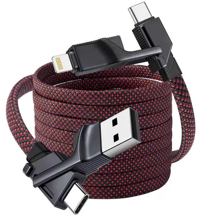 ? Upgrade 4 in 1 USB Charging CableNo more messy cables or forgotten adapters. The 4-in-1 multi charger has every connector you need: USB-C to USB-C USB-C to Lighting USB-A to USB-C and USB-A to Lighting. whether you are at home in the office traveling or even in a car. it's perfect for travel and everyday use offering ultimate convenience in a single cable.? 240W USB C Fast Charging CableThe multi charging cable provides up to 240W Output; Experience ultra-fast usb to c cable with the USB C to