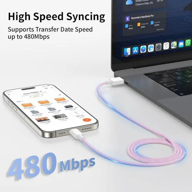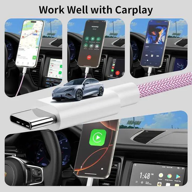 Efficient Charging & Data TransferExperience faster charging with up to 3.0A current output ensuring optimal performance. Enjoy high-speed data transfer of up to 480 Mbps for seamless photo music video and file transfersCompact and Portable and DurableThe Carplay USB C Cable is a compact design that makes it easy to store in your car or carry with you on the go. It is ideal for charging your devices on the go. With 30 000+ times bend test the sturdy and durable woven nylon shielding layer gives the cable stronger protection and flexible performance than others which makes it easily survive everyday usage.