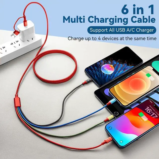 6 in 1 Multiple Chargers Cord for