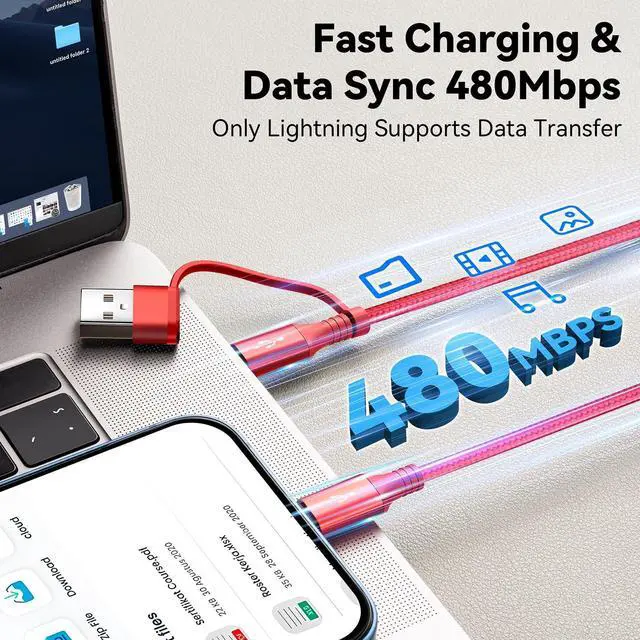 Data Sync: The maximum total output current can be up to 4A (total not each end) charge faster than most 4-in-1 cables and work better for tablets and Pad charge devices. (Only Lightning Port support fast data transfer and CarPlay USB-C and Micro-USB port just for charging )Upgraded
