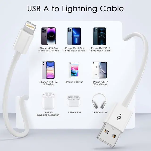 [Fast Charging & Sync] - iPhone Charger Cord Max 2.4 output current high quality copper wire improve charging and data transfer speed of iPhone charging cable. iPhone Lightning Cable ensures faster charging time and keeps your device safer. [Perfect comptibility] - iPhone lightning cables compatible with iPhone 14/14 Plus/14 Pro/14 Pro Max/iPhone 13/13 mini/13 Pro/13 Pro Max/12/12 mini/12 Pro/12 Pro Max/11/11 Pro/11 Pro Max/SE 2/XS/XS Max/XR/X/8Plus/8/7Plus/7/6s Plus/6s/6 Plus/6/5s/5c iPad AirPods[MFi Certified] - The lightning cable has an original lightning chip inside. Make sure it's compatible with your iPhone and charges your device safely. Enjoy fast data transfer sync and charging.