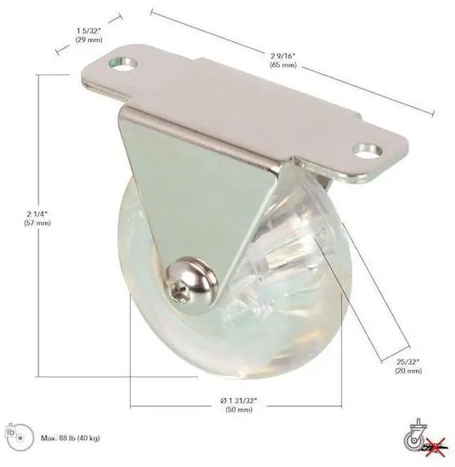 California Proposition 65: This product contains a chemical known to the State of California to cause birth defects or other reproductive harm. Contemporary clear/gray furniture caster. Inspired by rollerblade wheels.
